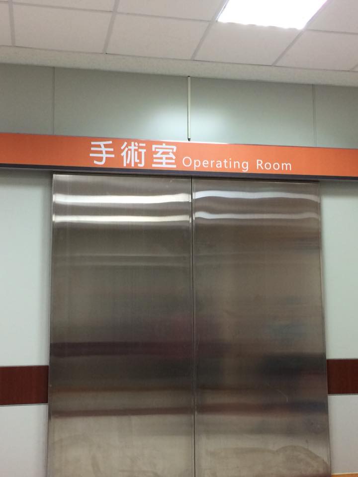 中午門診結束,我立刻趕赴醫院,媽媽已經在病房進行手術前準備。約2個小時後,傳送人員來接媽媽到手術房,為了安全起見,坐上輪椅。陪著媽媽從病房搭電梯到手術房。