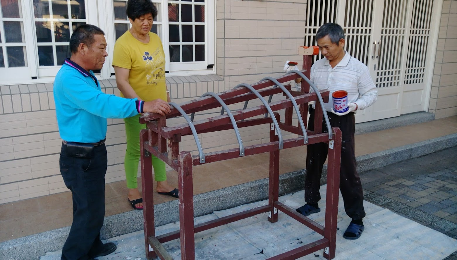 社區村長,更是體力旺盛。他今年62歲,每天早上大約3:30起床,會先開車巡邏社區半小時,然後到社區信仰中心「開安宮」整理公務。四、五點開始,他會分批發送問候早安的簡訊給不同的村民朋友,不分假日,持續每天都做。由於他知道我們家早起,大約在五點半左右我就會收到簡訊,原本以為我們是最早的一批,沒想到已經是村長第二批問候的村民了。而到了大約六點時,社區一些老人家就會陸陸續續來到廟裡,村長會繼續跟老人家問候請安,並且聊聊村內需要互相幫助的大小事情,大約到七點左右,他才離開廟裡,準備回去做他的本業,水電工作。而其他的老人家,也一一離開廟宇,繼續回去種菜、種田。