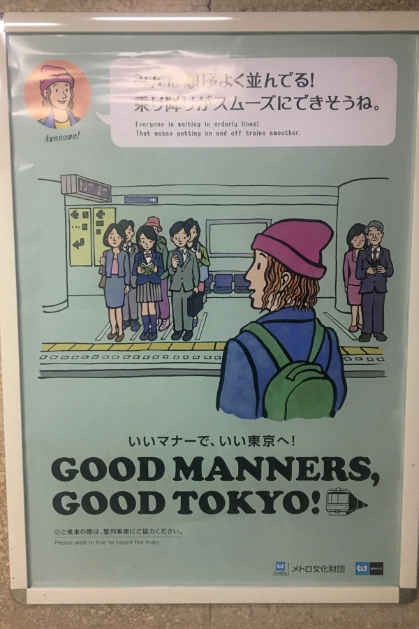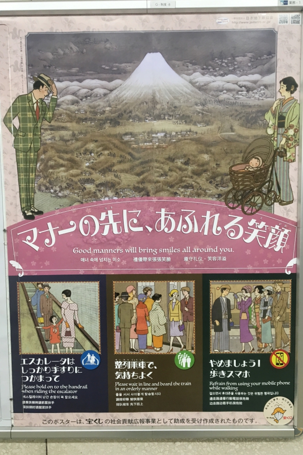 特別做成海報宣傳,會不會有點小題大作呢?稍微觀察一下才發現,乘車禮儀似乎真的讓日本人相當困擾。日本民營鐵道協會每年都會在官方網站上都會公布「車站與電車內的困擾行為排名」,去年度的前五排名分別是「吵鬧的談話」、「座位的坐法」、「行李的提法、放法」、「邊走邊講電話、玩手機」與「乘降電車時的禮儀」。所以若是你打電話給在日本的友人,但對方沒有接電話,只是告訴你說「抱歉現在在搭電車」時,千萬別以為是藉口,他只是不想被旁人白眼看待而已。這座城市的生活小秘訣與禮儀,藏在許許多多「理所當然」的事情裡呢。