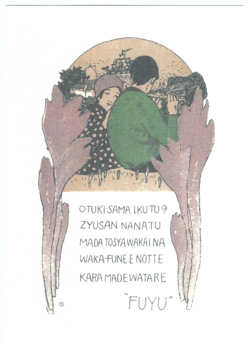 竹久夢二的畫作是大正浪漫的代表,夢二式美人或身著江戶時代的和服、也或者西方臉孔與服飾,同樣纖細憂鬱,無論和洋美人,卻總有著雖近在眼前卻遠如夢境一般的感覺。和服美人看似日本傳統,不過,大正時代快速現代化的腳步,傳統不斷剝落,對城市人來說尤其如鄉愁般的存在。同樣地,西洋美人不但有著濃郁的異國情緒,也像是童話般地存在。
