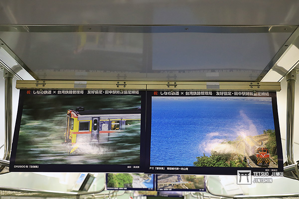 這列自強號塗裝的115系,車內還懸掛許多台灣與日本鐵道攝影家的作品,讓日本旅客能夠了解自強號塗裝的過往,以及台灣美麗的鐵道風光。輕井澤算是台灣觀光客的熱門景點,有機會來到這裡,可別忘了順便搭一下雪中的自強號喔!