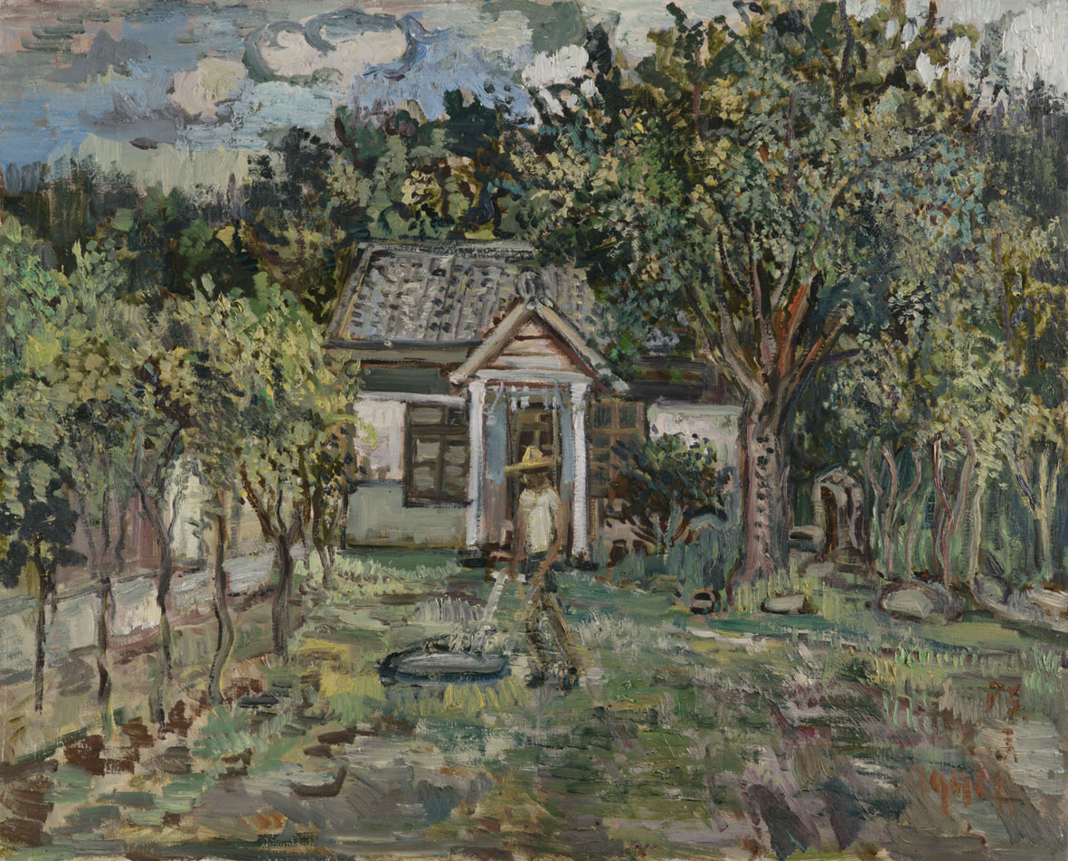 音樂怎樣表現泥土,我不知道,但繪畫,在我看過了一個人的畫後,我知道包括無論是佛烈德利赫或是康斯坦伯都沒畫出泥土,誇張的詩人有時喜歡說「芬芳的泥土」,但對在田間打滾長大的鄉巴佬來說,泥土有許多不同的味道,但是似乎談不上芬芳,總是帶著一種帶著像青草或者乾草啦的腥味,並不刺鼻也不討厭,很熟悉親切的腥味。我不知道畫也可以畫出這種味道,但看到了陳來興畫的田園後,吃了一驚,說原來可以。