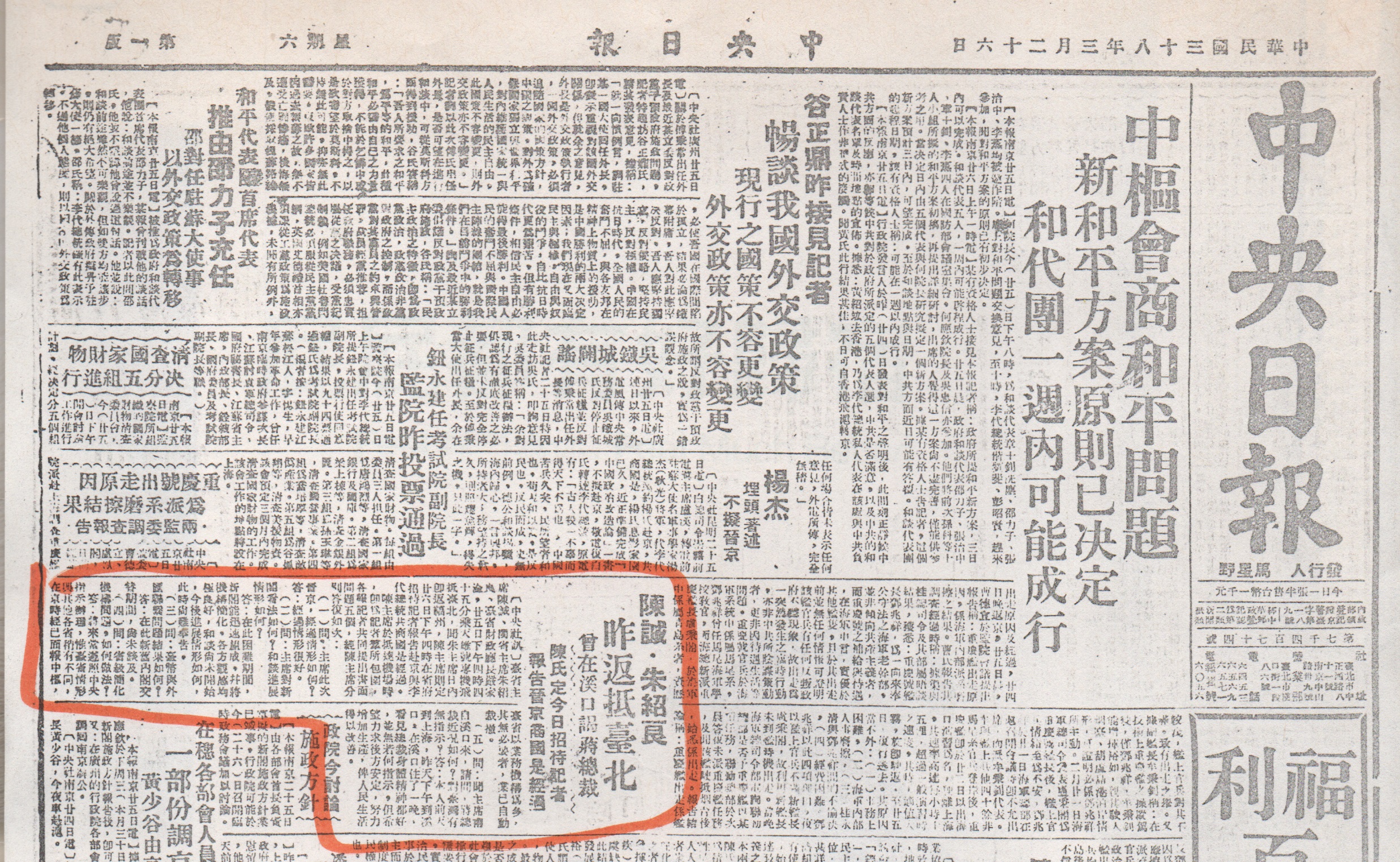 陳誠在三月二十五日返回台灣,第四天,他下令清查主謀份子,要對「三二○事件」的學生開刀,並開出一份黑名單準備抓人。