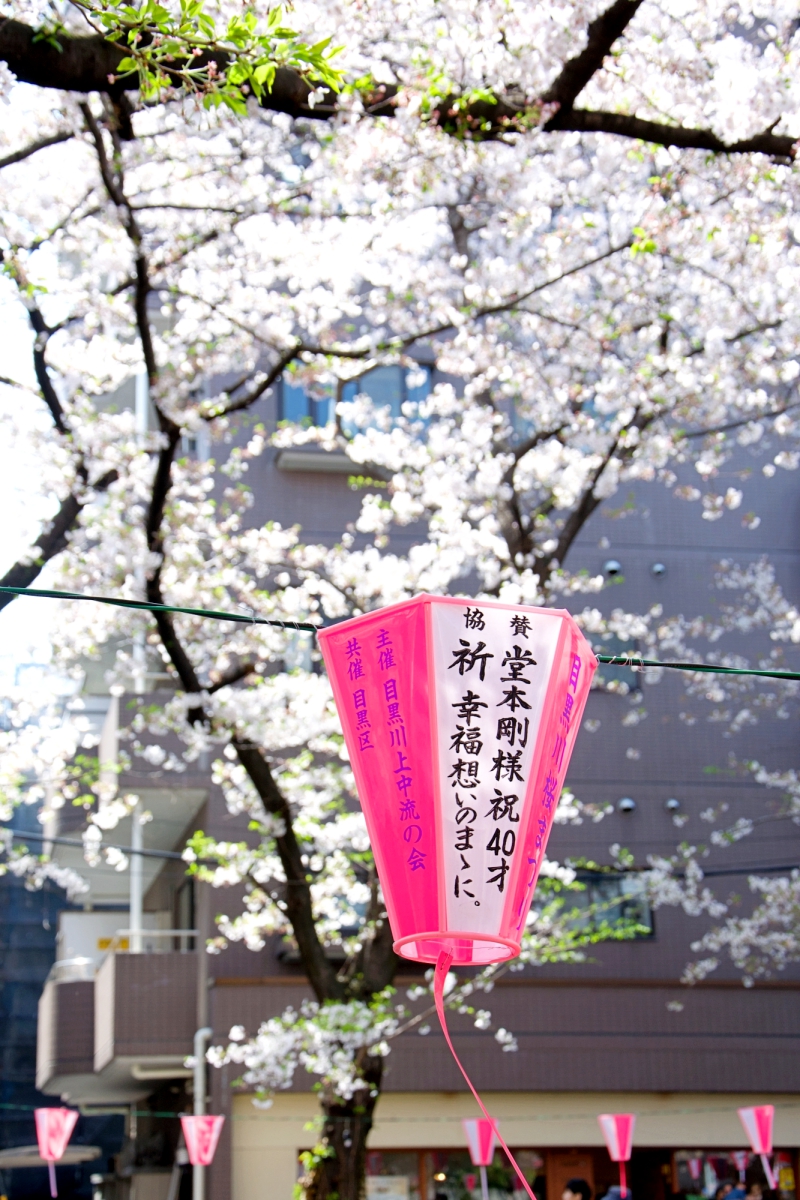無論是偶像、歌手、聲優還是演員,可以看到目黑川畔的燈籠上,書寫的都是創意與心意俱表的訊息。比如說,有人對今年逢20週年的傑尼斯偶像嵐、出道45週年的資深樂團「阿飛合唱團」以及出道18週年男子組合w-inds.發出週年的祝賀燈籠,也有人對日前突發恐慌症、正在靜養的偶像團體Sexy Zone成員松島聰與King & Prince成員岩橋玄樹寫下應援訊息,告訴他們粉絲「會等你喔」(待ってるよ)、「沒問題的」(大丈夫),讓人看了也覺得心暖暖。其中,與櫻花相當有緣,音樂作品中就有一首歌命名為「染井吉野」的堂本剛,更可說是擁有最多祈願燈籠的名人了,加上花季尾聲時又正值他的40歲生日,伴隨著花雨與微風搖曳的粉色燈籠,那些溫柔的祝福、幸福健康的祈願,更像是一種浪漫的贈禮,透過風聲與花香傳遞給本人。
