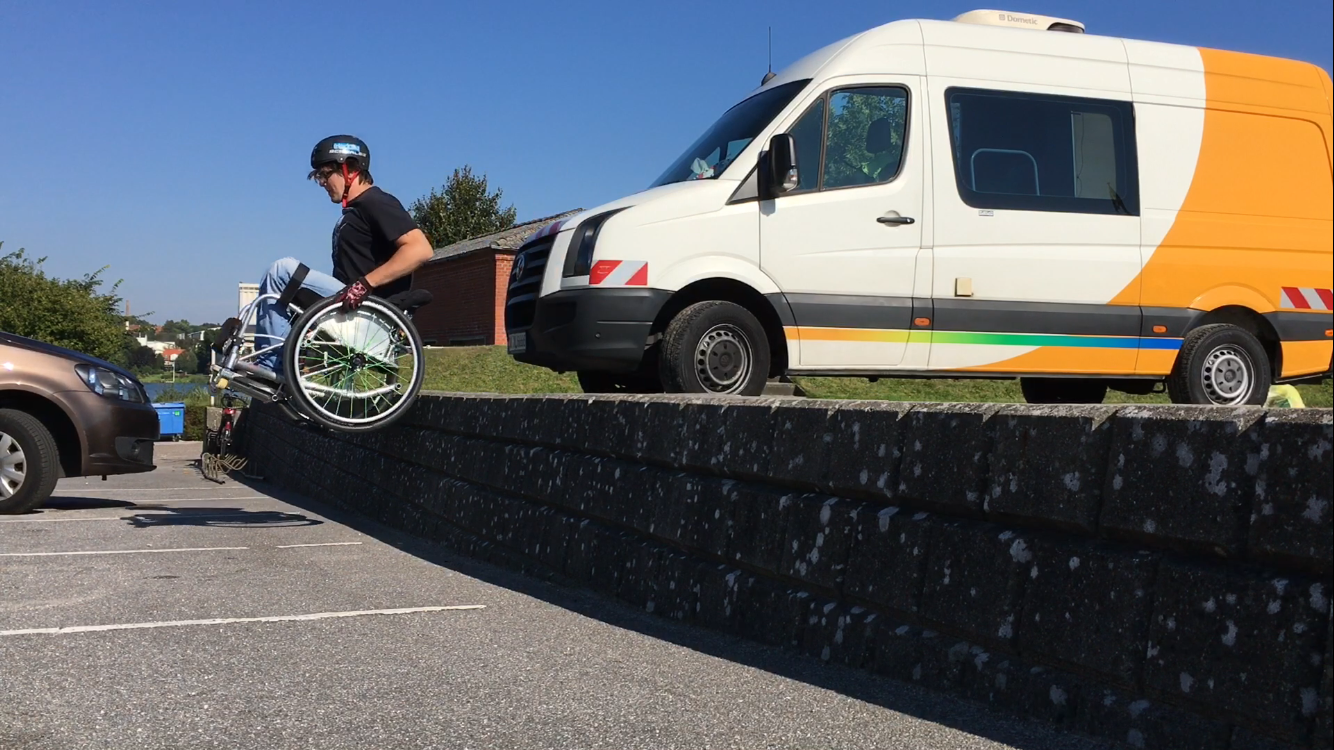 當大衛從朋友口中聽到WCMX這項運動時,看到影片中的好手竟像滑板好手在滑板場上耍帥,令他非常訝異,也下定決心要親自嘗試。他毫不猶豫地跑去請教自己的復健師:「我要知道如果我連人帶輪椅摔到地上,要如何爬回輪椅!」。當他坐著笨重的輪椅出現在滑板公園時,練習新招式的滑板玩家們都傻眼了。當大衛重心不穩,連人帶輪椅狼狽地跌在地上時,大家衝過來要扶他起來,不敢置信的對他叫著:「你瘋了嗎?」