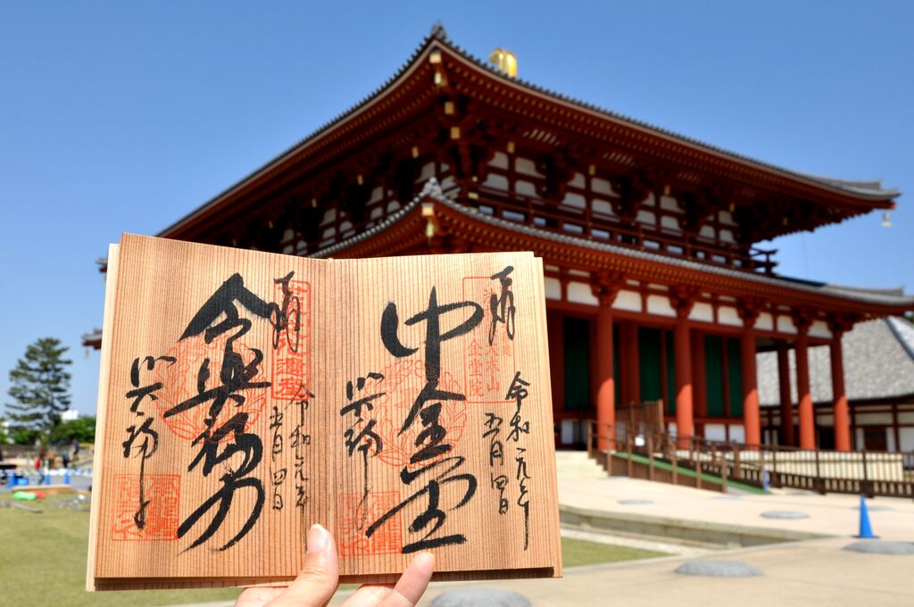 「御朱印」是到日本的神社或寺廟參拜時,可以請神職人員或寺務員授予的一種參拜證明,上頭會記載著由社方或寺方親筆寫下的寺社名或主祭神的名字、參拜日期,並蓋上專屬的社紋或寺印,一份御朱印約300日圓至500日圓不等,並寫在專屬的「御朱印帳」上。相較於古時得要先抄完經書,才能獲得一份御朱印,如今可說是相當化繁為簡了。不過,必須抱持虔敬之心與獲得的祝福意義,仍是不減。