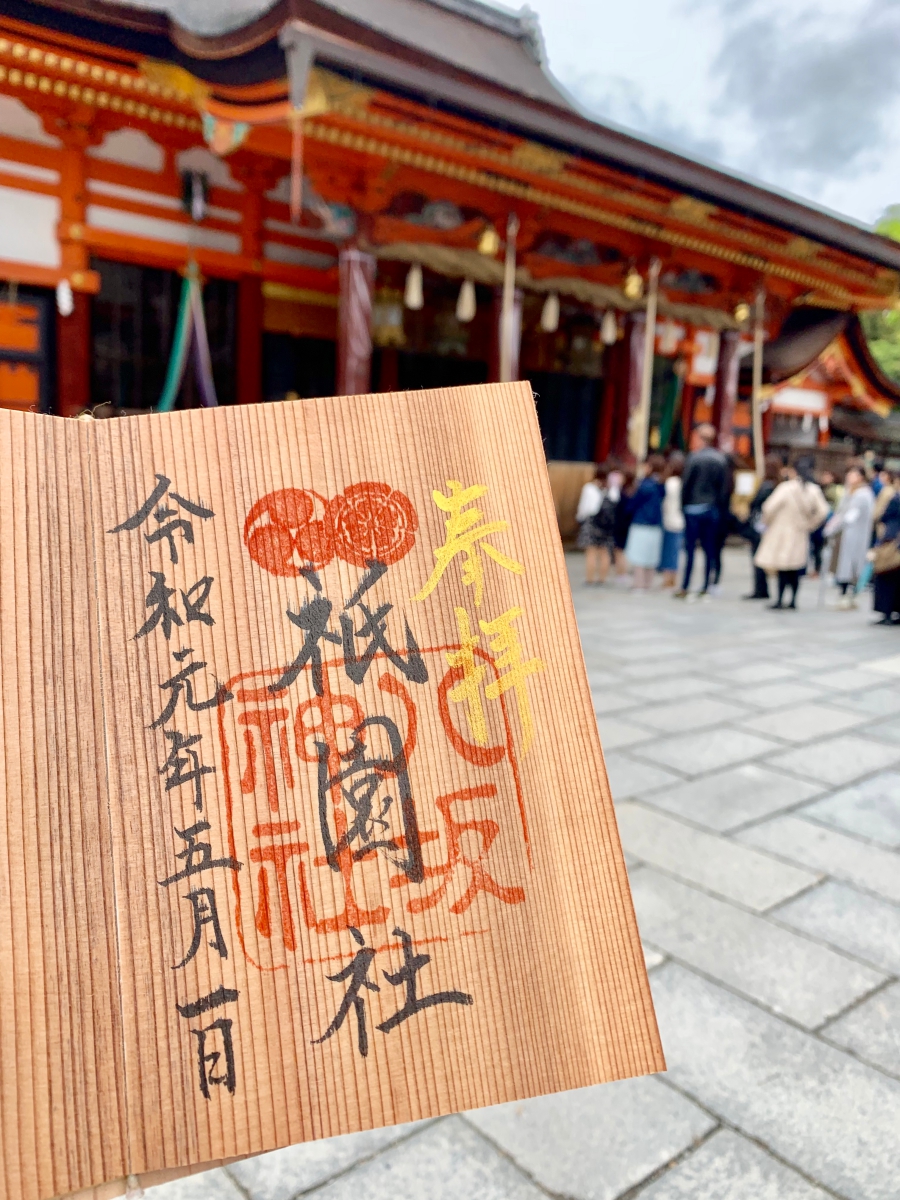 由於御朱印上會寫上參拜日期,且是用年號來記載,加上這份親手書寫的溫度與獨一無二的特性,再透過神社與寺廟加持下的神聖性,讓御朱印成為改年號期間中,只要有心人人皆可參與的另類「慶祝」方式。許多神社、寺廟原本就會在舉辦祭典或季節變化之際,設計期間限定的御朱印,因此平成邁入令和期間,也響應了這份期待,紛紛推出特別的慶祝版本,比如說京都的八坂神社,將原本的「奉拜」二字換成金色的墨來書寫,奈良的春日大社則除了原本會蓋印的社紋章之外,再蓋上象徵日本皇室的菊紋。