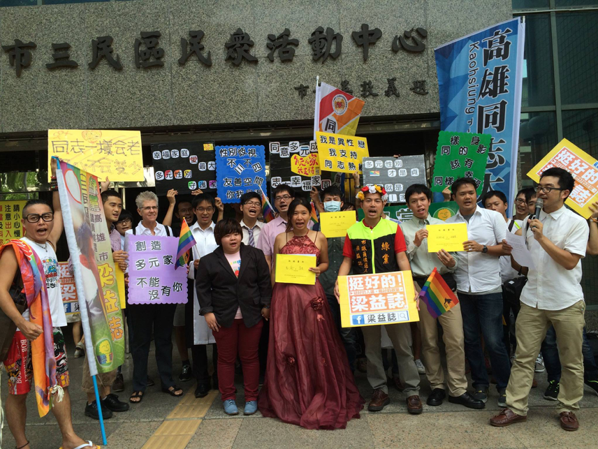 2014年09月20日對我來說是我們的結婚紀念日,在當時因為婚姻平權法案在 立法院已經擱置了十個月,我們跟當時的社運夥伴為了要讓更多人看見同志婚姻的重要性,我們就一起去衝戶政事務所,雖然當時沒有實質效果,也沒有法律效益,但因為有許多夥伴一起見證,也有牧師到場祝福,對我來說我跟喵喵就像是真的結婚了。