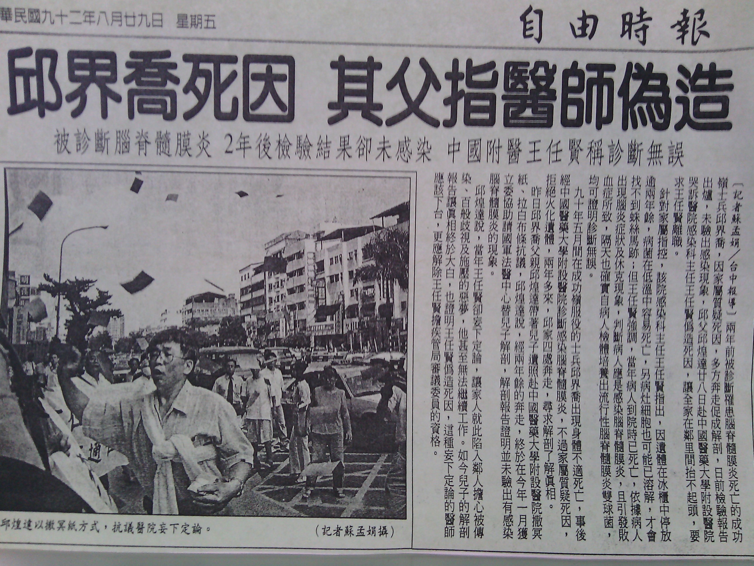 有趣的是,就在邱煌達為了真相踽踽奔走的2001與2002這兩年,正是1990年代以來台灣腦脊髓膜炎個案發生率最高的兩個年度,分別高達四十幾例,且多數集中在軍中。迨至,邱煌達次子死因真相曝光後,腦脊髓膜炎的年度個案數,方從2003年開始腰斬至每年20例左右的統計常態水準。