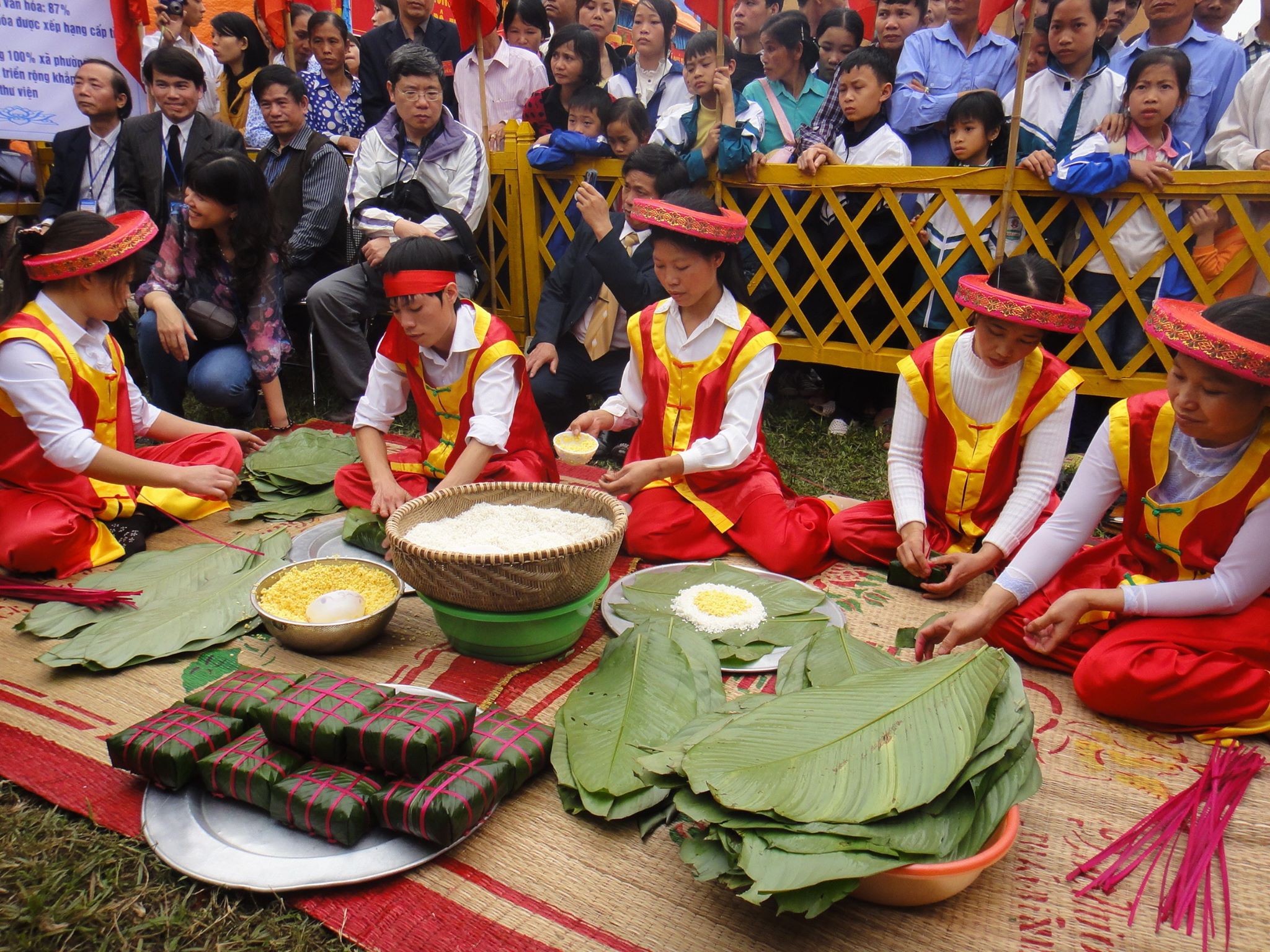 雄王為越南傳說中的先祖。某天,雄王召集他的全部兒子表明誰能在年底前帶回珍奇寶物以攏絡雄王的心,就將王位傳給他。於是他的兒子就四處奔跑找尋寶物。結果,最後雄王挑選了第十八位兒子帶回的珍寶:象徵天圓地方的粽子。原來,雄王的第十八兒子用糯米及芭蕉葉做成方形和圓形的二種粽子。圓形象徵天,方形象徵地,表示天地養育萬眾,子女以此粽子回報父母之恩。雄王非常高興,於是就將王位傳給有智慧的第十八位王子。