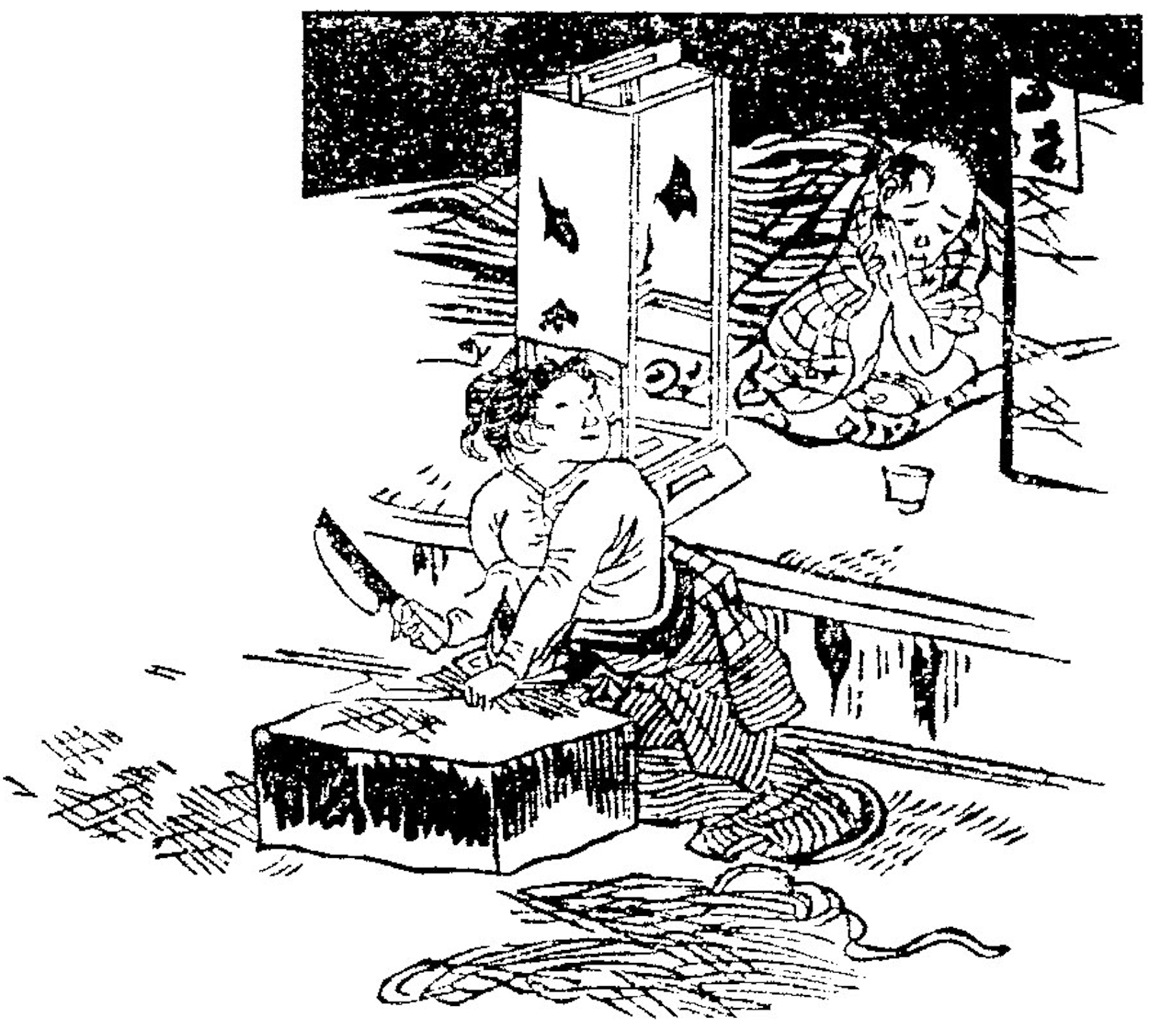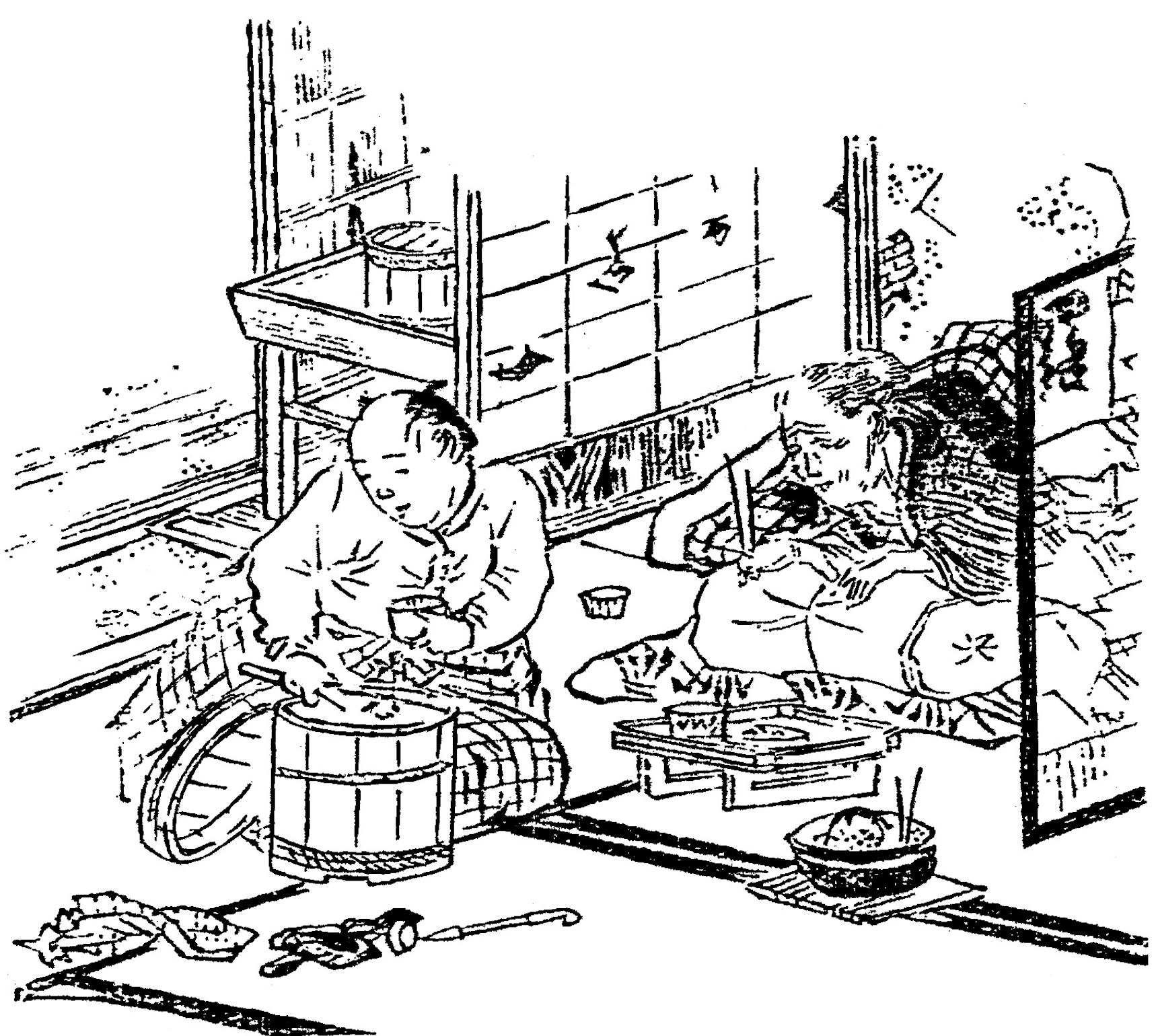 另外,在明治二○年代以後,石油燈取代了燈籠作為室內燈,所以在這張插畫的時代,石油燈已經相當普及了。