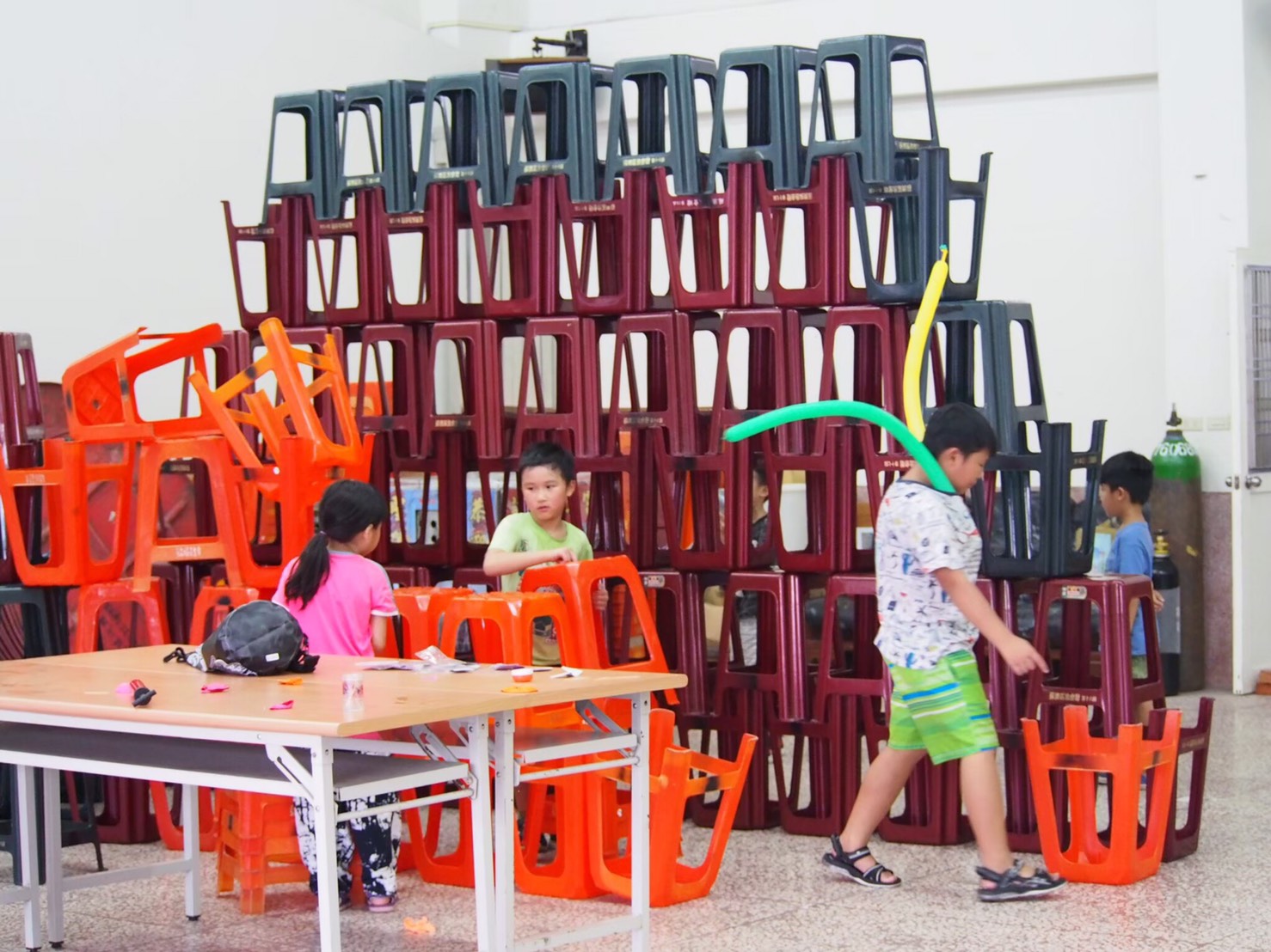忙著追逐、忙著堆疊積木、忙著踏浪挖沙坑、忙著逛步道、忙著混黏土、忙著打水仗、忙著包水餃、忙著蓋紙箱建築、忙著堆疊塑膠椅子、忙著製作自己的史萊姆、忙著拿過成人手中的相機擔任攝影師...等等,當然也忙著衝突、協商跟和好。