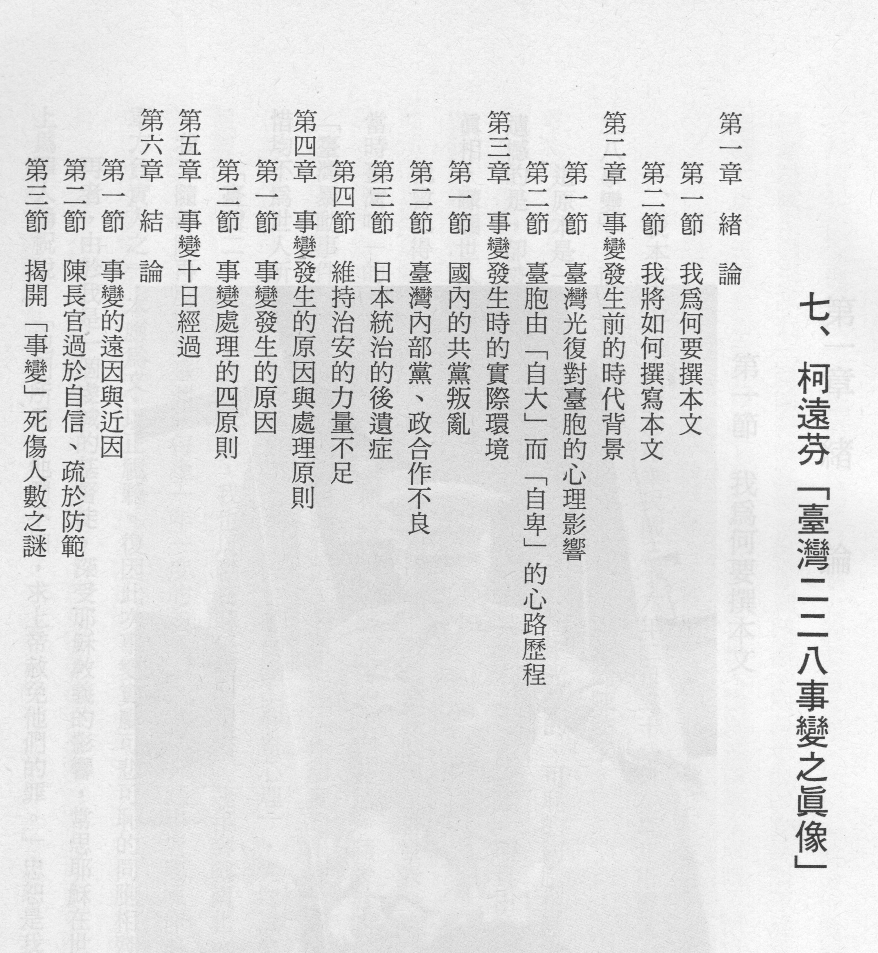 1947年事發之初,柯遠芬就認定『奸偽的陰謀業已完全證實,事件是無法和平解決的,只有準備充分的力量,與此反動勢力奮鬥』,他也推斷處理委員會『獨立的趨向愈益明顯了』。