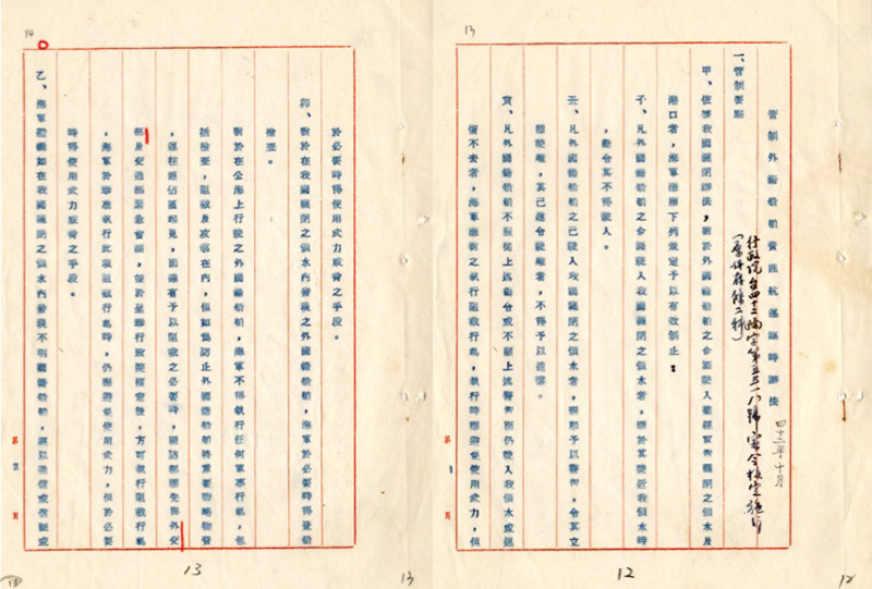 在中華民國政府1949年敗逃來前後,為了徹底封鎖尚無海軍勢力的中共,政府於1949年6月公佈「截斷匪區海上交通辦法」,並於8月公佈「投匪資匪之輪船公司及船隻緊急處置辦法」;隨後趁韓戰爆發,聯合國對中國實施禁運之機,接連發佈「管置資匪航運運行辦法」、「管制外籍船舶資匪航運臨時辦法」。