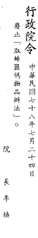 隨後在1988年,進一步開放可以轉口貿易之方式,進口中國的農工原料、中藥材。而過去都由警備總部執行的「取締匪偽物品」業務,也在1988年10月回歸財政部掌理。不到1年後的1989年7月,「取締匪偽物品辦法」也默默被廢除而成為歷史名詞。