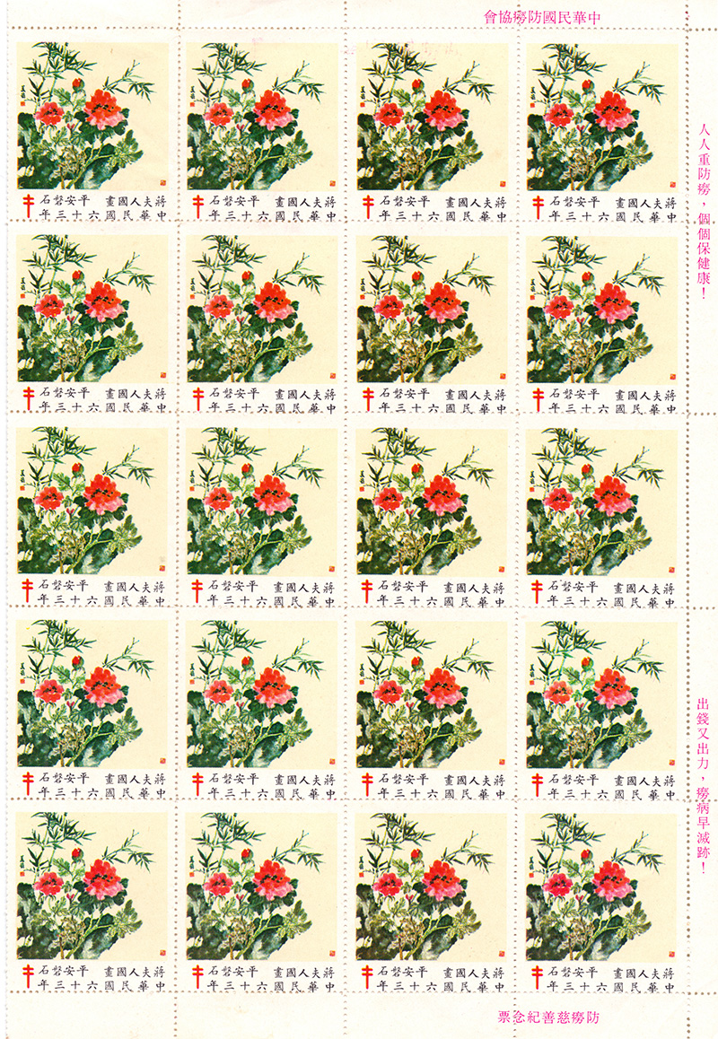而史上宣傳最力的是1974年度防癆票。因為蔣宋美齡以防癆協會理事長之身分,發表告全國同胞書,表示當年度的防癆票將以其畫作「平安磐石」做為圖案,希望人人購用,多多益善。果然在第一夫人的號召下,全國掀起認購潮,包括各級民意機關、商會、公會、學校、農漁會。