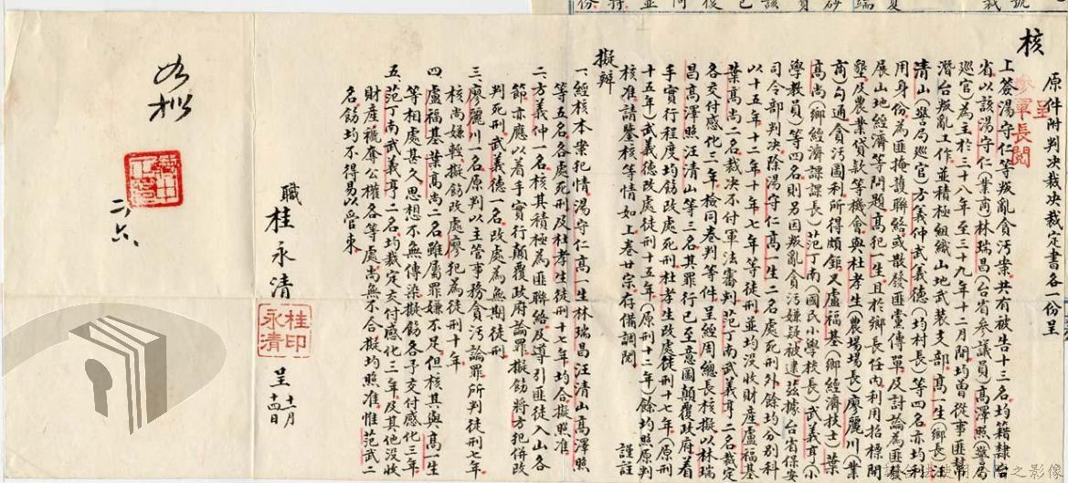 該案是在1953年六月五日完成初判,判決書遲至同年七月二十二日才定稿。當時中國國民黨政權的國防部長桂永清在同年十一月十四日把判決裁定書呈給蔣介石,蔣介石在1954年二月六日裁示後,國防部在同月十七日發文給台灣省保安司令部,軍事法庭軍事審判官殷敬文在同月二十三日立即依照裁示完成改判。