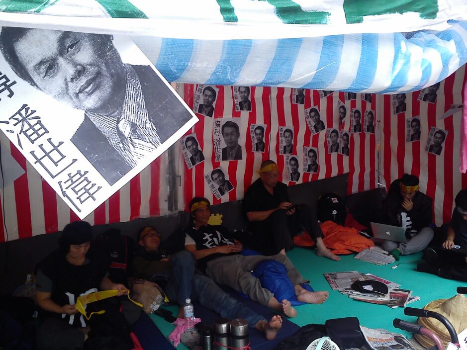 【絕食抗議現場】:這些臥軌工人,從4月28日起展開192個小時的絕食行動。他們的絕食抗議,卻得不到任何官方的回應與關心。絕食八天以來,勞委會上下官員無一人前來關心工人絕食健康狀況,甚至拒絕讓工人入內使用廁所,導致絕食者殷必雄到公園盥洗時昏倒送醫。這是我們號稱「關心」勞工的馬政府勞委會。
