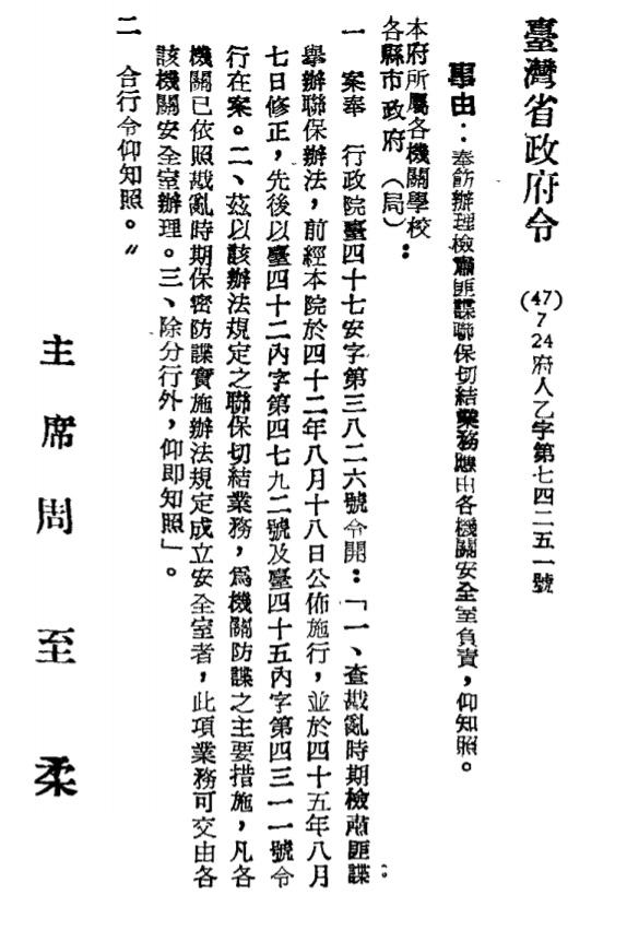 台灣現在是完全自由開放的社會,只要不違法,大家可以隨心所欲做想做的事。不過在戒嚴時期,很多現在看來理所當然的事,當時統統都不准做。例如最近熱映的電影「返校」,就揭露在那個時代,只要說了不該說的話、讀不該讀的書,就可能是犯罪;在機關學校內都有「人二室」、「安維秘書」專責此任務,直到解嚴後才遭到台灣社會的質疑。