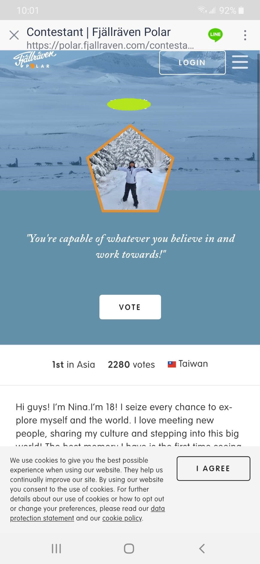前陣子同學輾轉傳來一個網路投票活動,是一位高三女生正在參加2020極地滑雪活動大使票選,將和南韓、日本、香港共同角逐唯二的兩個名額。一點開連結,除了看見她在亞洲的最新排名、得票數、還有青天白日滿地紅國旗,旁邊寫著「Taiwan, China」。看見台灣被矮化,實在非常不想投,但一來礙於同學情誼,不好婉拒;二來這位參賽者和自己當年唸同一所高中,想支持小學妹。但不想委屈在「中國台灣」的稱呼下投票,我決定與主辦單位聯絡,說明台灣不是中國的一省,請他們修正。