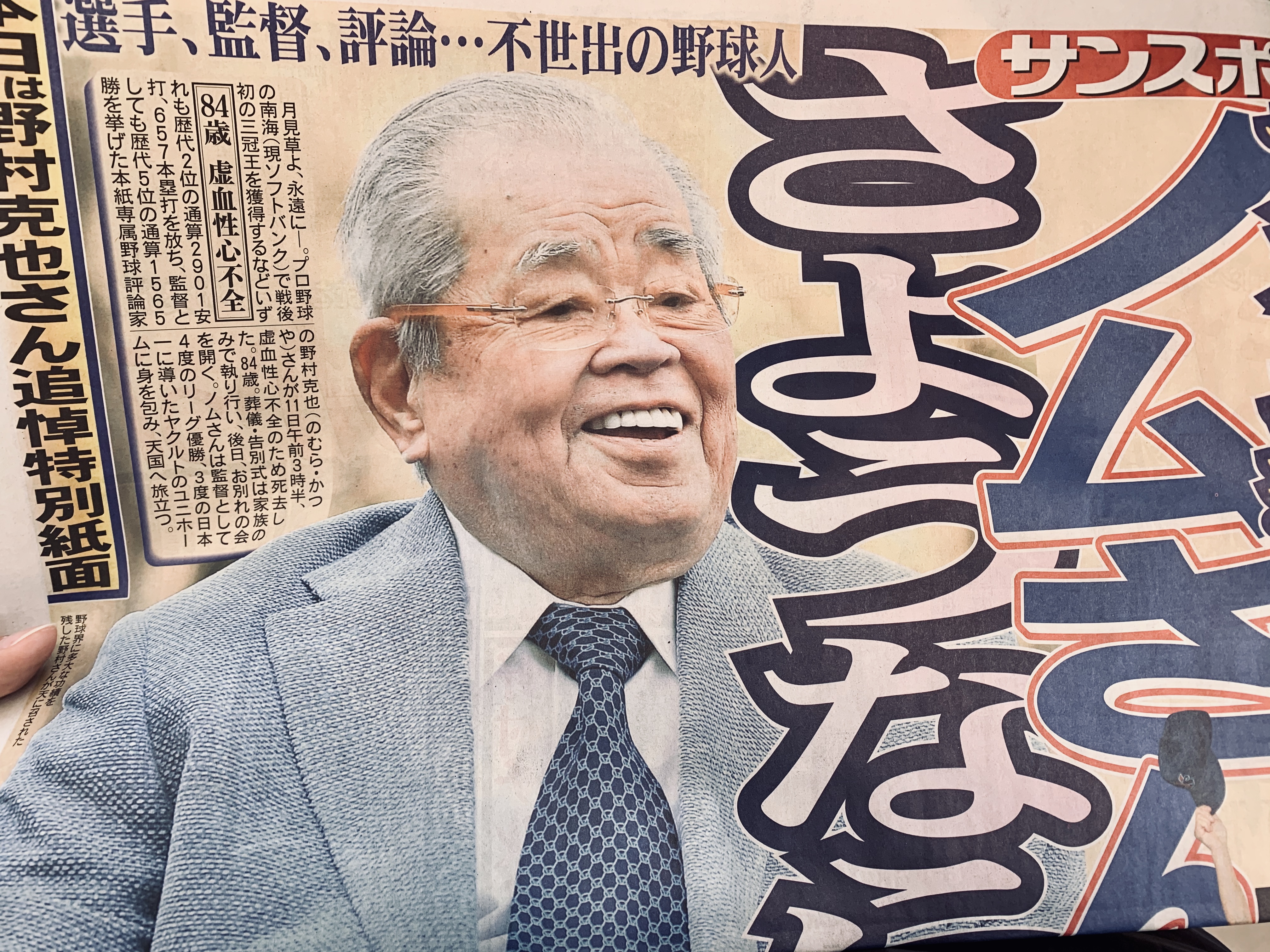 2020年2月11日,日本職棒界的傳奇教練野村克也被發現在家中昏倒,送醫後不治,享壽84歲。