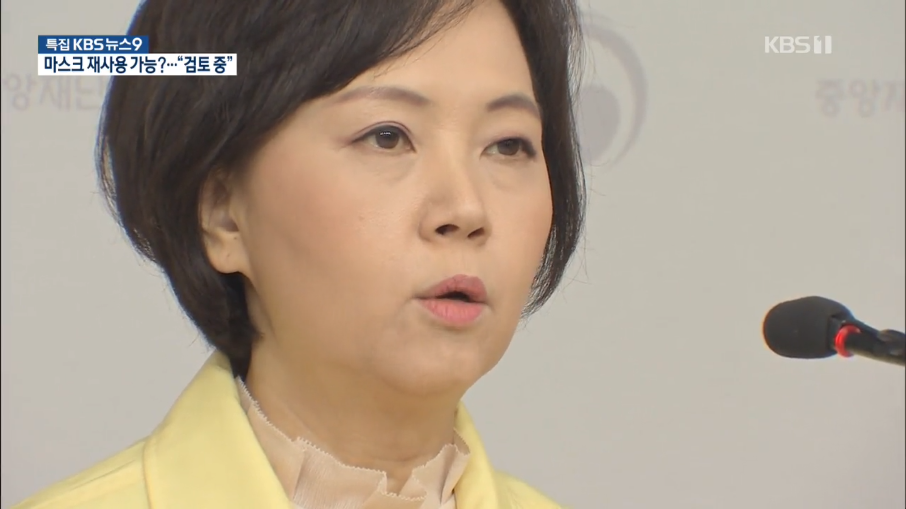 「基本上,我們的立場是『並不推薦這樣做』,但若無新的口罩能更換,根據當事人判斷口罩的汙染程度,還有口罩只有本人自己使用的前提下,我們認為,部分應該是能重複使用的。」面對外界的疑問,南韓食品與藥品安全處長李儀卿於2月26日的簡報會上說道。