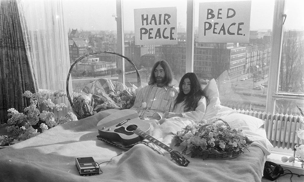 1968年,他們聯手推出專輯《兩個處子》(Two Virgins),藍儂決定以兩人的裸照作為專輯封面,以傳達洋子單純的精神。藍儂也曾表示,洋子教會了他許多東西,她當年推崇的「白色主義」(Whiteism),也影響藍儂為披頭四創作了知名的「白色專輯」(The White Album),並以《葡萄柚》的字句為靈感,在那架白色鋼琴上創作了傳世經典《Imagine》。小野洋子的作品《蘋果》(Apple),也成為披頭四創辦的蘋果唱片(Apple Corp.)之名,更啟發了多年後賈伯斯(Steve Jobs)以此創立蘋果電腦。兩人最著名的事蹟,莫過於1969年蜜月期間,他們在荷蘭阿姆斯特丹,一連七天打開酒店房門,穿著睡衣接待來客,並高喊「要做愛,不作戰!」(Make Love, No War!)的反戰口號,邀請媒體到兩人的床邊討論政治與愛,將此稱為「床上和平」(Bed Peace)運動。洋子與藍儂也在維也納柴契爾酒店(Sacher Hotel)召開的記者會上,用一塊巨大的白布包裹彼此,提出了「Bagism」的概念,諷刺人們只憑藉頭髮長度、皮膚顏色、服飾打扮等,來判定一個人的思維邏輯與偏見。追求愛與和平、慈善與寬容,是他們兩人身體力行的哲學,也為那個年代帶來了許多衝擊。