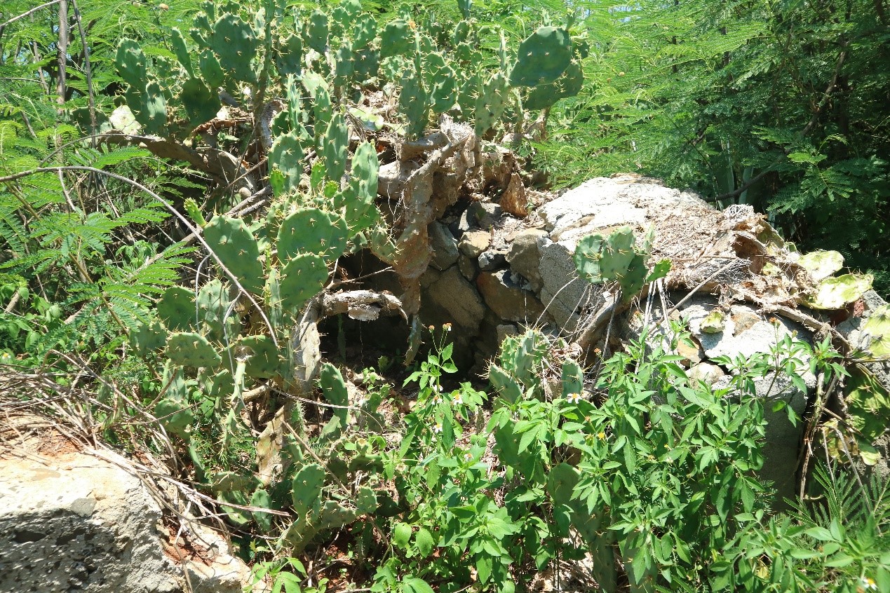 在我進入軍事遺跡探索的多年後,我也數次在田野中和這些長相凶狠的植物相遇。其中最令我印象最為深刻的,就是澎湖的仙人掌了。為了能夠清楚看見戰爭遺跡構造的樣貌,往往得利用草刀劈開覆蓋其上的叢生仙人掌。然而,仙人掌最可怕的地方就是他們被劈下,乃至於被熾熱太陽早已完全曬乾多時,表面的尖刺依然鋒利,絕非好惹的角色!
