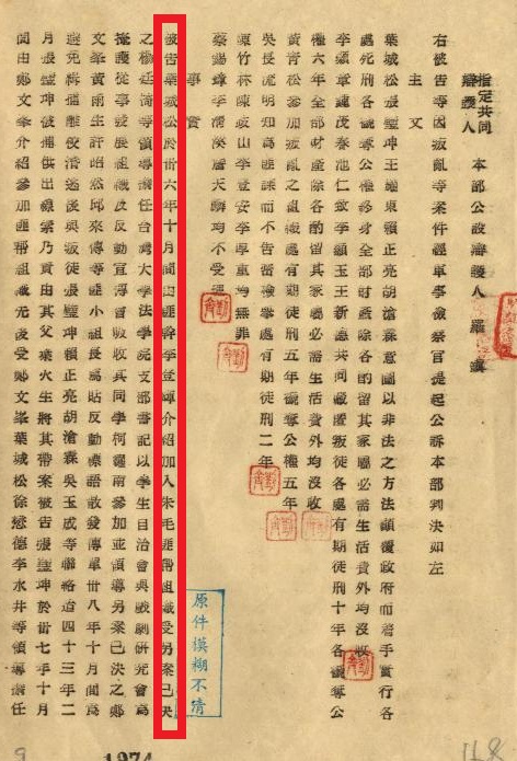 其他涉案的只有一、二位是台大學生,餘則都是以上五人家鄉的朋友,他們判決的情形如下: