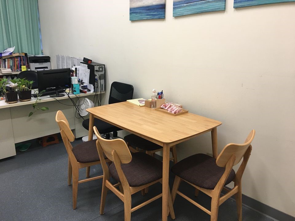 但在台灣,幾乎每位大學專任教師都有自己的研究室,所以下課後常常會留在校內繼續研究的工作,因此學生也很容易找到老師。任教於中原大學應用外國語文學系的許婷婷將研究室佈置得非常溫馨,也有很多學生會去她的研究室找她聊心事或對生活的迷惘。