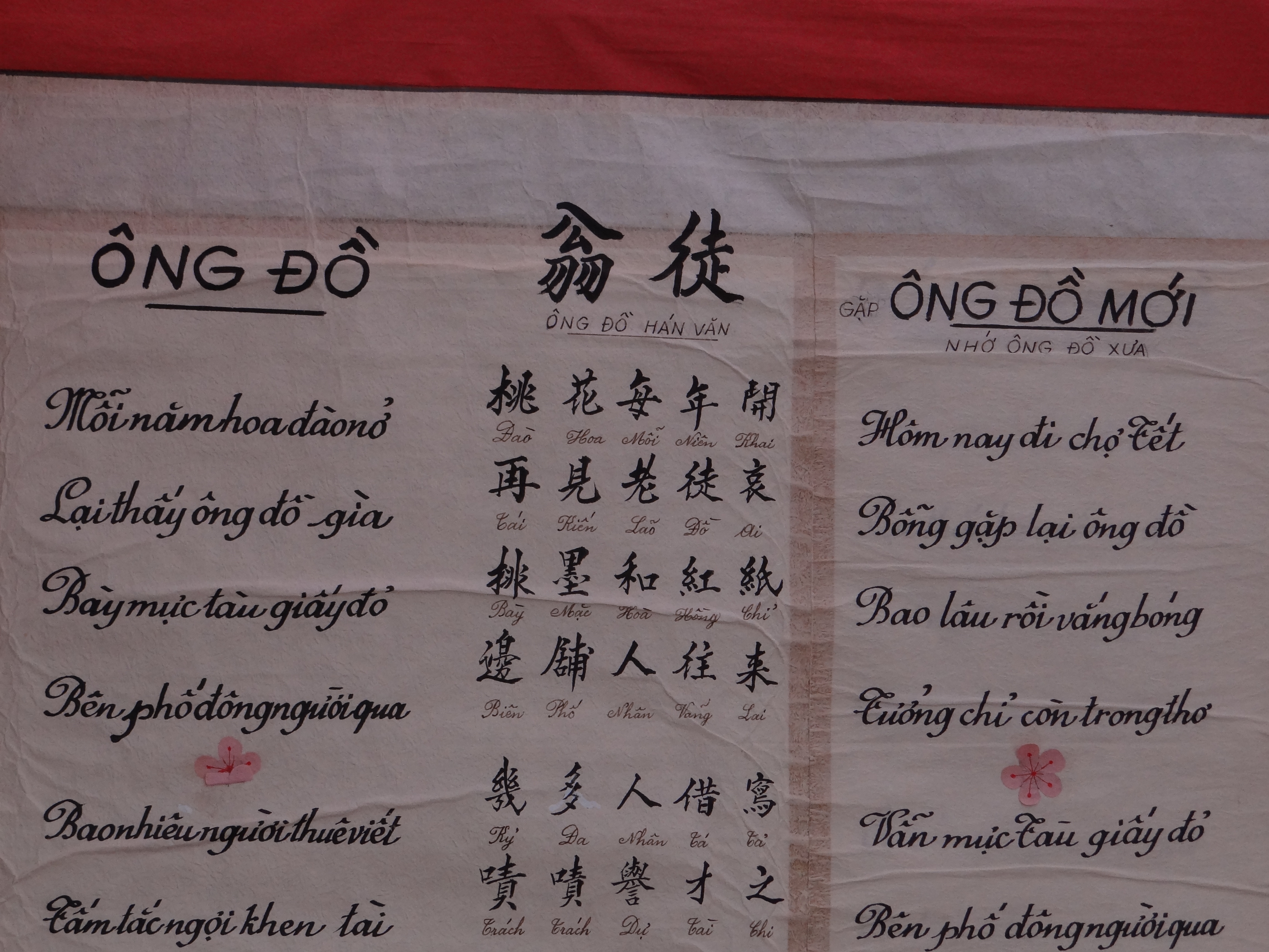 越南因有使用漢字二千多年的歷史,早期的翁徒均懂用漢字(chữ Hán)或字喃(chữ Nôm)寫書法。但當代的翁徒則未必懂漢字或字喃,且改用越南羅馬字(chữ Quốc ngữ)。目前,有些地方會於過年前以文化市集的方式辦理現代翁徒寫春聯或字畫的活動。譬如,河內市常於文廟周邊,胡志明市則於青年文化中心(Nhà Văn hóa Thanh Niên )旁的范玉石街(Phạm Ngọc Thạch)辦理翁徒寫春聯迎新春的活動。