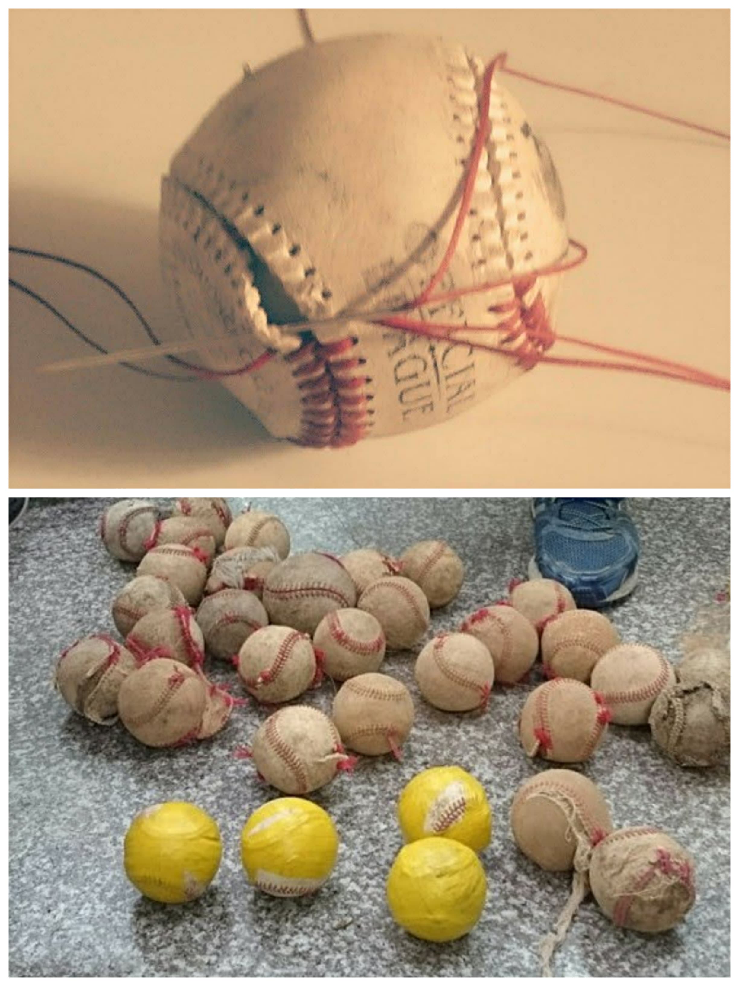 棒球的製造從一顆球心開始,外層用各種線一層一層纏起來,纏成一顆球的形狀,再包覆兩塊皮革,最後把皮革以108道縫線縫合在一起,這一顆顆皮包線包心的球,就是我們熱愛的棒球。