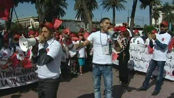 今年的紀念,一邊是卡薩布蘭卡的人權組織聯合爆炸幸存者和遇害者眷屬走上街頭,玩游戲、畫畫、演講,呼籲政府加强民主改善民生遏制恐怖主義;另一邊,在首都拉巴特國會門前,一眾伊斯蘭和賽萊菲主義者集會,口號同樣有民主和人權。他們說:政府逮捕數千賽萊菲和伊斯蘭主義者,但迄今官方沒有給出可靠證據,證明卡薩案與賽萊菲有確鑿關係,政府應還賽萊菲以公道,政府更應釋放尚在獄中的賽萊菲政治犯!