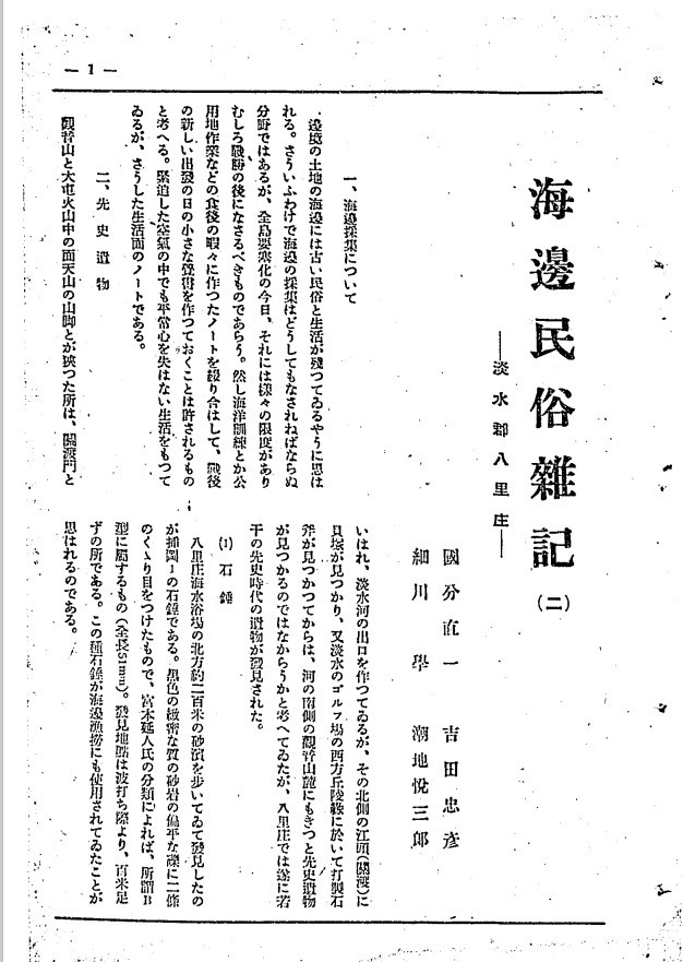 [1] 國分直一(1908-2005)。出生於日本東京,於台灣打狗、台南等地成長。主要學術領域為考古學、民俗學及民族學等。金關丈夫(1897-1983),出生於日本香川,主要學術領域為解剖學、人類學等,為台灣體質人類學研究先驅者。1941年參與創辦《民俗台灣》月刊。