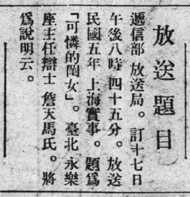 ─ 小說中的核心角色許天馬,就是1930年代大名鼎鼎的辯士詹天馬,他是永樂座的王牌辯士,也是電影史的一段傳奇。無聲電影時代,辯士的言說主宰觀眾的觀影。詹天馬是「二刀流」辯士,既能把日本時代劇的打殺場面說得如身歷其境,也能把上海電影的愛情悲劇說得讓人感慨無限。詹天馬崛起的時刻,正值放送協會成立,他也曾在廣播電台用台語講解《戀愛與義務》。