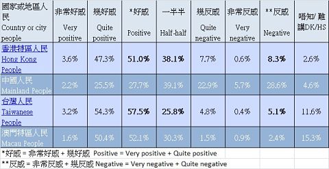 香港大學民意研究計劃常年做香港人對各地人民和政府好感度的民意調查,去年6月公布了一個報告很令台灣人受寵若驚。因為報告說,香港人最有好感的第二名的是台灣人民,好感的程度高達57%,只輸給新加坡人,甚至比香港人對自己好感程度51%還要高。