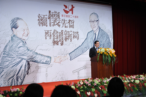 馬英九總統於辜汪會談二十週年紀念茶會致詞。圖片來源:Straits Exchange Foundation 海基會