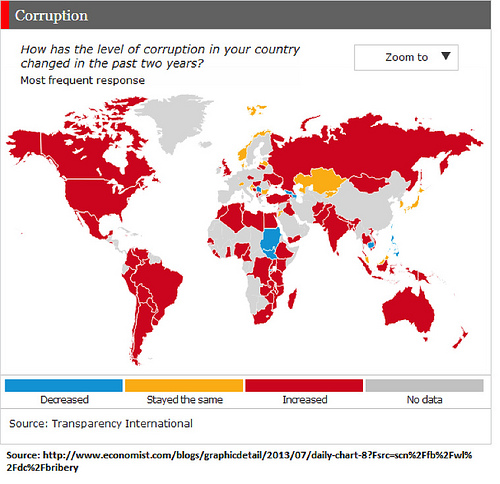 國際透明組織(Transparency International)發表2013年的報告,被經濟學人雜誌引述後,臺灣媒體也爭相報導內容有提到臺灣的數據。