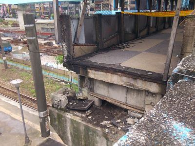 所幸天佑基隆,當時底下沒有列車通過而釀成更大鉅災。至於恰巧通過而隨天橋下墜的22歲長髮妙齡美少女奇蹟似地僅受輕傷,因此那幾天這位亮麗的「虱目魚千金」反成國內各家電子媒體追逐的重心,成功轉移政治究責的焦點。這個嶄新的景點離火車站不遠,建議遊客可徒步前往拍照。