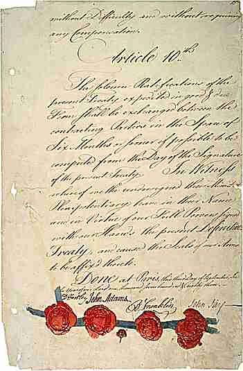 談判過程中,法國海軍在西印度群島戰敗,先前打贏契沙比克灣海戰,促成約克鎮最後勝利的格雷西被俘,西班牙進攻直布羅陀也以落敗收場,於是談判籌碼落到英美這一方,很快的,各國都同意了富蘭克林與英國所談妥的條款。