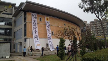 行政院事件(3/24)的當天,交通大學的客家學院在外牆上掛了:「暴力政權血染雙手;退回服貿捍衛民主」的巨型布條(見圖1)...