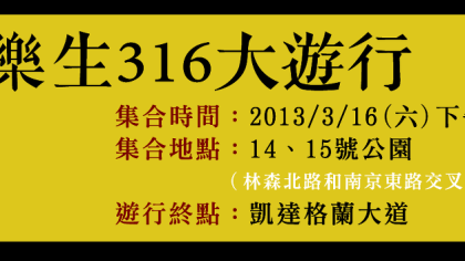 2007年3月16日,樂生療養院被張貼上強制拆遷通告;2013年3月16日,在樂生院被迫拆遷六年後,各界青年以六步一跪的方式,呼籲政府面對錯誤...