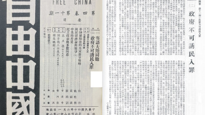 1950年代中期,有一份政論性刊物《自由中國》半月刊,經常針貶蔣介石極權統治,讓蔣介石政權深感芒刺在背,多次由黨國特務對該刊進行騷擾...