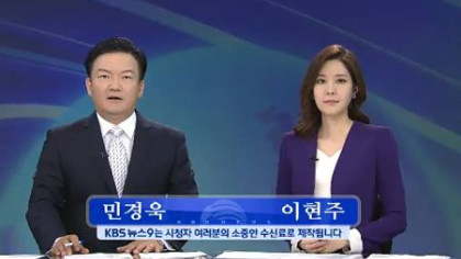 上面這張圖是今年年中起的KBS晚間新聞開場進棚畫面,主播的姓名字卡都會標示「KBS 9點新聞是以閱聽眾所繳納之珍貴收視費製作而成。」...