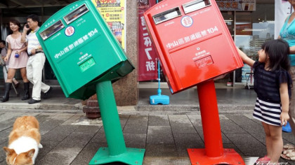 一場颱風幾乎重創全台,卻也無意中吹出了一個令人驚豔的「創意」──台北市南京東路與龍江路口的一對郵筒因遭強風吹落的招牌砸中而致「歪頭」...