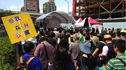 2015年4月25日,護樹團體以「找回一座森林」,宣示對巨蛋的不滿,是臺灣體育運動與公民運動的關鍵對決!走上街頭...