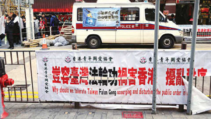 這是一幅香港的照片,一幅針對法輪功的橫額: 法輪功有沒有禍害香港並不重要,重點在於「臺灣法輪功禍害香港」頭兩字:台灣。 雖然可以有別的解釋...