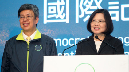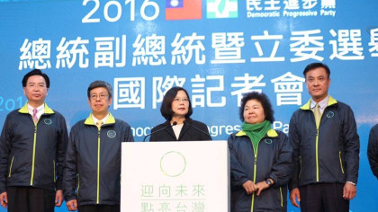 民主進步黨總統當選人蔡英文今(16)日偕同副總統當選人陳建仁、全國競總主委陳菊、秘書長吳釗燮、總幹事蘇嘉全及執行總幹事林錫耀召開國際記者會...