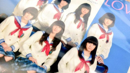 手中的CD封面上,是七位可愛的女孩身穿高中女生制服,對著鏡頭微笑,桃紅色的蝴蝶領結和她們嫣紅的臉頰與水亮的嘴唇正合襯。定神一看...